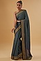 Featuring an iron grey woven saree in crepe base with floral print and swarovski embroidery. It is paired with an unstitched blouse piece. Accentuate with traditional jewellery for a pooja ceremony or a festive occasion.
