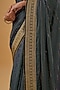 Iron Grey Crepe Floral Printed & Swarovski Embroidered Woven Saree Set