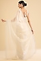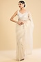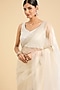 Featuring an ivory saree in organza base with swarovski embellishments and scalloped border. It is paired with an unstitched blouse fabric. Style it with wedges, gold jhumkas and a sleek bun for a chic ethnic look. Ideal for festive gatherings, family functions, or sangeet ceremonies.