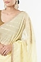 Featuring a lemon yellow saree in organza base with gold weaved stripes, lace, mustard piping, and tassels. It is paired with a matching unstitched blouse piece.