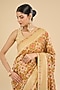 Light Yellow Khadi Georgette Zari Embroidered Saree Set