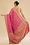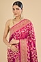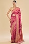 Featuring a magenta saree in satin base with zaal and cutdana embroidery. It is paired with an unstitched blouse fabric. Style this exquisite saree with luminous diamond jewellery, heels and refined makeup for a timeless look perfect for a wedding, mehendi sangeet ceremonies.