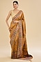 Featuring a mustard saree in blended silk base with floral and motif embroidery in bird and peacock pattern. It is paired with an unstitched blouse fabric. Style this exquisite saree with luminous diamond jewellery, heels and refined makeup for a timeless look perfect for a wedding, haldi sangeet ceremonies.