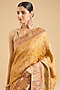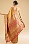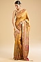Featuring a mustard saree in satin silk base with embroidery. It is paired with an unstitched blouse. Accentuate it with polki stud earrings, a clutch and heels for a sangeet, engagement or pooja ceremony.