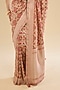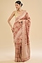 Featuring a peach saree in khadi georgette base with zaal embroidery. It is paired with an unstitched blouse fabric. Style this exquisite saree with luminous diamond jewellery, heels and refined makeup for a timeless look perfect for a wedding, poojas or sangeet ceremonies.