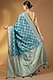 This majestic peacock blue banarasi silk saree with zari floral pallu and jaal pattern detail. The saree comes with an unstitched blouse piece. Style it with a structured blouse and statement earrings for a refined look.
