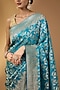Peacock Blue Banarasi Silk Floral Saree Set