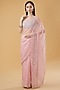 Featuring a pink saree in organza base with jaal, sequins and crystal embellishments. It is paired with an unstitched blouse. Accentuate with statement jewellery and heels for a pooja ceremony or festive occasion.