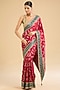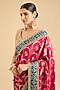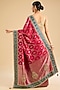 Featuring a rani pink saree in georgette base with threadwork. It is paired with an unstitched blouse. Accentuate it with polki stud earrings, a clutch and heels for a sangeet, engagement or pooja ceremony.