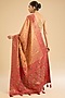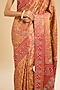Featuring a pink saree in satin silk base with zari thread work, zarkan and swarovski embellishments in peacock motif pattern. It is paired with an unstitched blouse fabric. Style it with wedges, gold jhumkas and a sleek bun for a chic ethnic look. Ideal for festive gatherings, family functions, or sangeet ceremonies.
