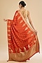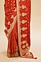 Featuring a red saree in crepe silk base with embroidery. It is paired with an unstitched blouse fabric. Style this exquisite ensemble with luminous diamond jewellery, heels and refined makeup for a timeless look perfect for festive occasion, sangeet or pooja ceremonies.