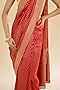 Featuring a red saree in khadi georgette base with embroidery. It is paired with an unstitched blouse fabric. Style this exquisite ensemble with luminous diamond jewellery, heels and refined makeup for a timeless look perfect for festive occasion, sangeet or pooja ceremonies.