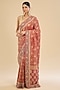 Red Khadi Georgette Elephant Motif Embroidered Saree Set