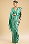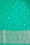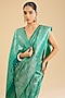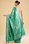 Featuring a teal green saree in satin silk base with wildlife motif detailing in silver zari. It is paired with an unstitched blouse fabric. Style it with wedges, gold jhumkas and a sleek bun for a chic ethnic look. Ideal for festive gatherings, mehendi, or sangeet ceremonies.