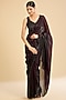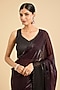 Featuring a wine saree in glass tissue base with print and swarovski embroidery. It is paired with an unstitched blouse. Accentuate it with dangler earrings and juttis for a festive occasion or pooja ceremony.