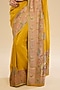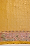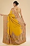 Featuring a yellow saree in blend silk base with print. It is paired with an unstitched blouse fabric. Style this exquisite ensemble with luminous diamond jewellery, heels and refined makeup for a timeless look perfect for festive occasion, sangeet or pooja ceremonies.