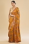 Featuring a yellow saree in crepe silk base with embroidery. It is paired with an unstitched blouse fabric. Style this exquisite ensemble with luminous diamond jewellery, heels and refined makeup for a timeless look perfect for festive occasion, sangeet or pooja ceremonies.