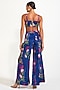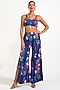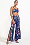 Featuring a blue bustier in crepe base with embroidery. It is paired with slitted pants. Accentuate it with statement earrings and heels for an evening wear.