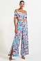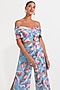 Featuring a blue off-shoulder top in crepe base with pearl embellishments. It is paired with high-slit pants. Accentuate it with statement earrings and heels for an evening wear.