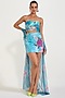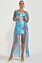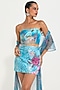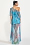 Featuring a blue bustier in neoprene base. It is paired with a skirt and a net embroidered cape. Accentuate it with statement earrings and heels for an evening wear.
