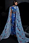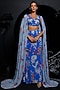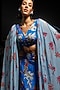 Featuring a blue and orange lehenga in natural crepe and soft nylon net base with floral print and embroidery. It is paired with a blouse having cape sleeves, print and embroidery. Accentuate it with statement jewellery and heels for a sangeet or engagement ceremony.