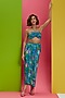 Featuring a forest green wrap around skirt in natural crepe base. It is paired with a bustier.