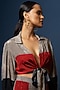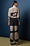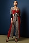 Featuring a grey and orange shirt top in natural crepe base with tie-up. It is paired with matching straight pants.