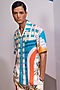 Featuring a beige polo shirt in cotton linen base. It is paired with shorts. Style your look with slip-ons for brunch dates, beach outings, summer parties, or vacation strolls.