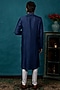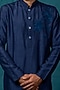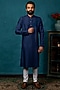 Featuring a blue kurta in silk base with self thread embroidery. It is paired with contrasting white churidar pants.