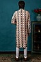 Featuring a blush pink kurta in cotton silk base with print. It is paired with contrasting white churidar pants.