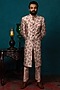 Featuring a blush pink kurta in silk base with print. It is paired with matching churidar pants.