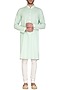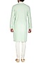 Featuring a mint blue kurta in khadi base with strips print and mandarin collar. It is paired with matching white churidaar pants.