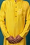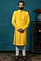 Featuring a yellow kurta in silk base with self hand embroidery. It is paired with white churidar pants. Perfect for any festive occasion.