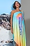 Multi-Colored Cotton Linen Bead Embroidered One-Shoulder Dress