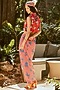 Featuring a red cropped blazer in natural crepe base with floral print. It is paired with a bustier and a draped skirt. Accentuate with statement earrings and heels for a complete look.