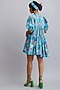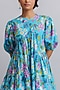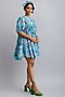 Featuring a turquoise tiered dress in cotton base with floral print and puffed sleeves.