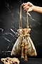 Featuring a gold potli with metallic chain and bead work. It has a silk lining, drawstring closure and handle. Perfect for weddings, festive occasions or elegant evenings, this potli complements both traditional and contemporary attire with effortless grace.