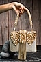 Featuring a gold clutch with metallic chain and stone work, including crystal embellishments. It has a silk lining and handle. Perfect for weddings, festive occasions or elegant evenings, this potli complements both traditional and contemporary attire with effortless grace.