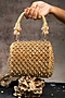 Featuring a gold mini bag in silk base with crystal and beads embroidery. It has a silk lining and beaded handle. Perfect for weddings, festive occasions or elegant evenings, this potli complements both traditional and contemporary attire with effortless grace.