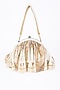 Featuring a light gold clutch in sequins silk base with hand embroidery and pearl tassels. It has a detachable handle and a brocade lining.