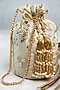 Featuring an off-white bucket bag in jute base with sequins and bead hand embroidery. It has a silk lining and handle. Perfect for weddings, festive occasions or elegant evenings, this potli complements both traditional and contemporary attire with effortless grace.