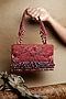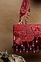 Featuring a red box clutch in suede base with bead and crystal work, including tassel detail. It has a silk lining and two detachable handles. Perfect for elevating your ethnic ensembles on any occasion.