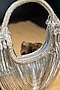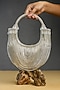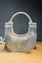 Featuring a silver boat-shaped bag with metallic chain details. It has a silk lining and beaded handle. Perfect for weddings, festive occasions or elegant evenings, this potli complements both traditional and contemporary attire with effortless grace.