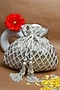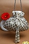Featuring a silver and white shaded potli in suede base with criss-cross beads and pearl work. It has a silk lining and a detachable handle. Perfect for elevating your ethnic ensembles on any occasion.