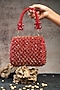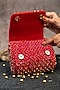 Featuring a wine mini bag in silk base with crystal and beads embroidery. It has a silk lining and beaded handle. Perfect for weddings, festive occasions or elegant evenings, this potli complements both traditional and contemporary attire with effortless grace.