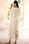 Featuring an off-white kurta in cotton base with machine embroidery. It is paired with pants and a dupatta. Style it with ethnic dangler earrings and block heels for festive occasions.