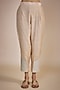 Featuring a beige striped anarkali in tissue and chanderi base with zari embroidery. It is paired with pants and a dupatta. Accentuate it with statement jewellery and heels for a festive occasion or family gathering.