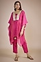 Featuring a pink striped kaftan in tissue base with zari embroidery. It is paired with a bustier and fine chanderi pants. Accentuate it with statement jewellery and heels for a festive occasion or family gathering.