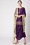 Featuring a purple short kurta in pure silk base with zardosi embroidery. It is paired with a matching draped skirt and dupatta.