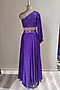 Featuring a purple skirt in modal satin base with bandhani print and mirror work. It is paired with a matching one-shoulder blouse.